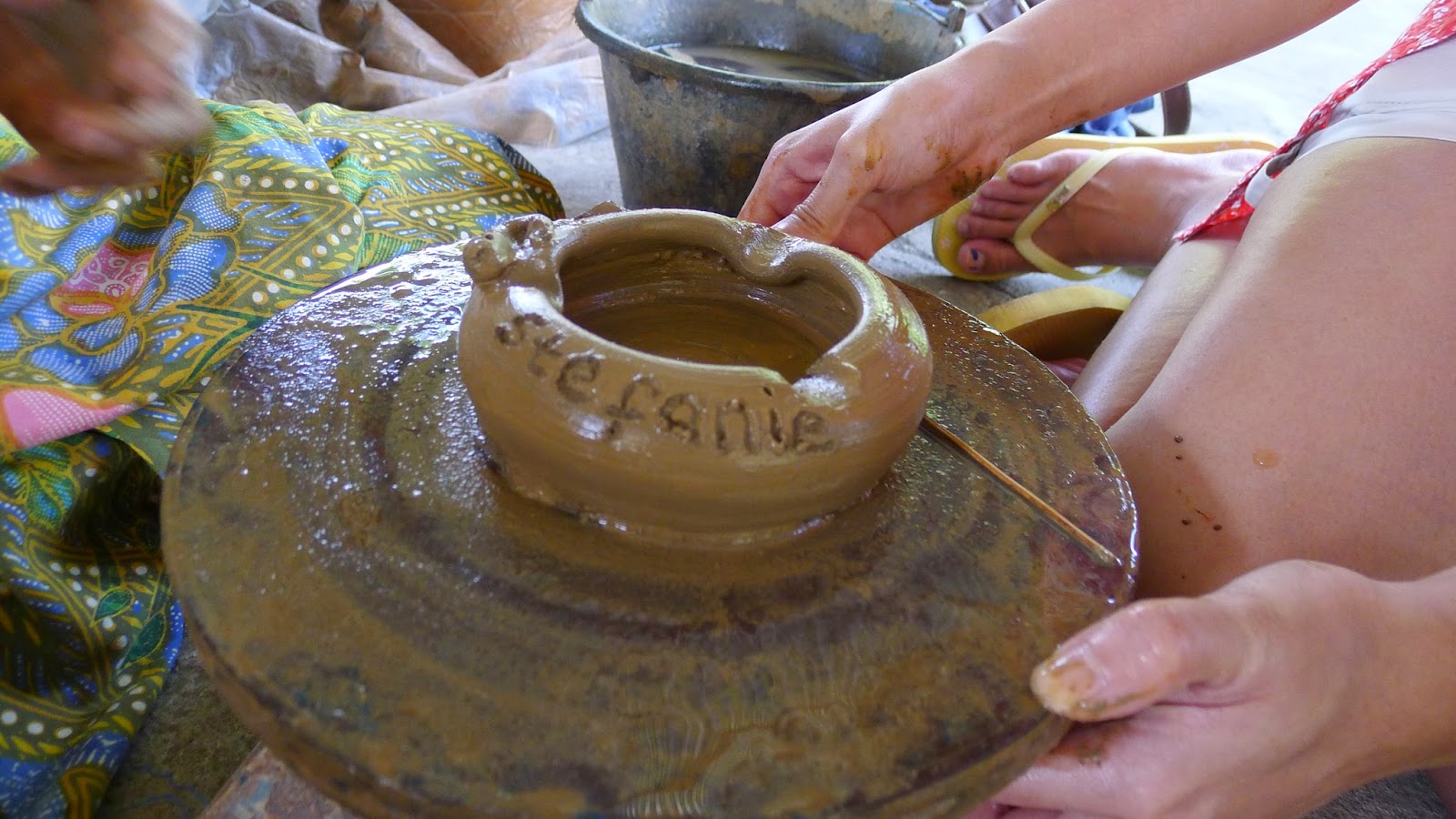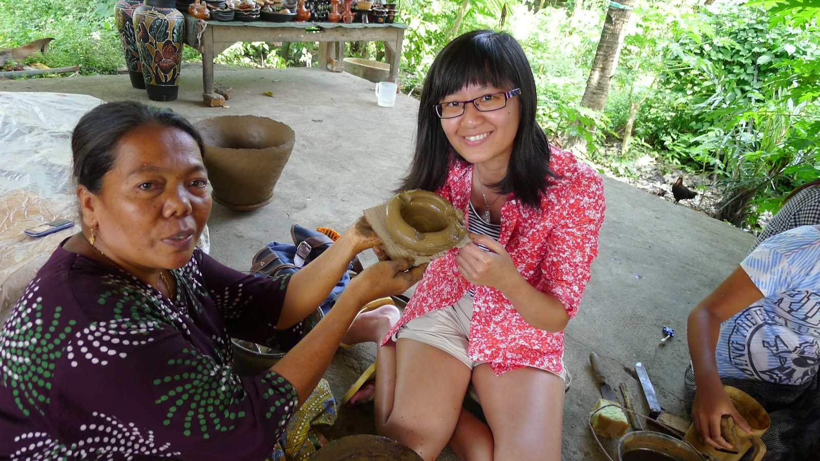 Pas ditanya mau bikin apa, gw jawab gw mau bikin sesuatu yang paling simpel dan paliiiing gampang. Dalam benak gw, mungkin mangkuk atau gelas kecil. Eeehh tau-tau si ibu malah nyeletuk: ‘Oh, asbaaak.’ (sambil ketawa-ketawa), sambil berusaha meyakinkan kalo asbak juga gampang bikinnya. Gw pun pasrah. Dan… pas asbaknya udah jadi, si ibu malah nyuruh gw nambahin cicak di samping. Anyway, gw suka cicaknya karena nyengirnya kelebaran jadi dia keliatan kaya cicak yang suka heboh sendiri.