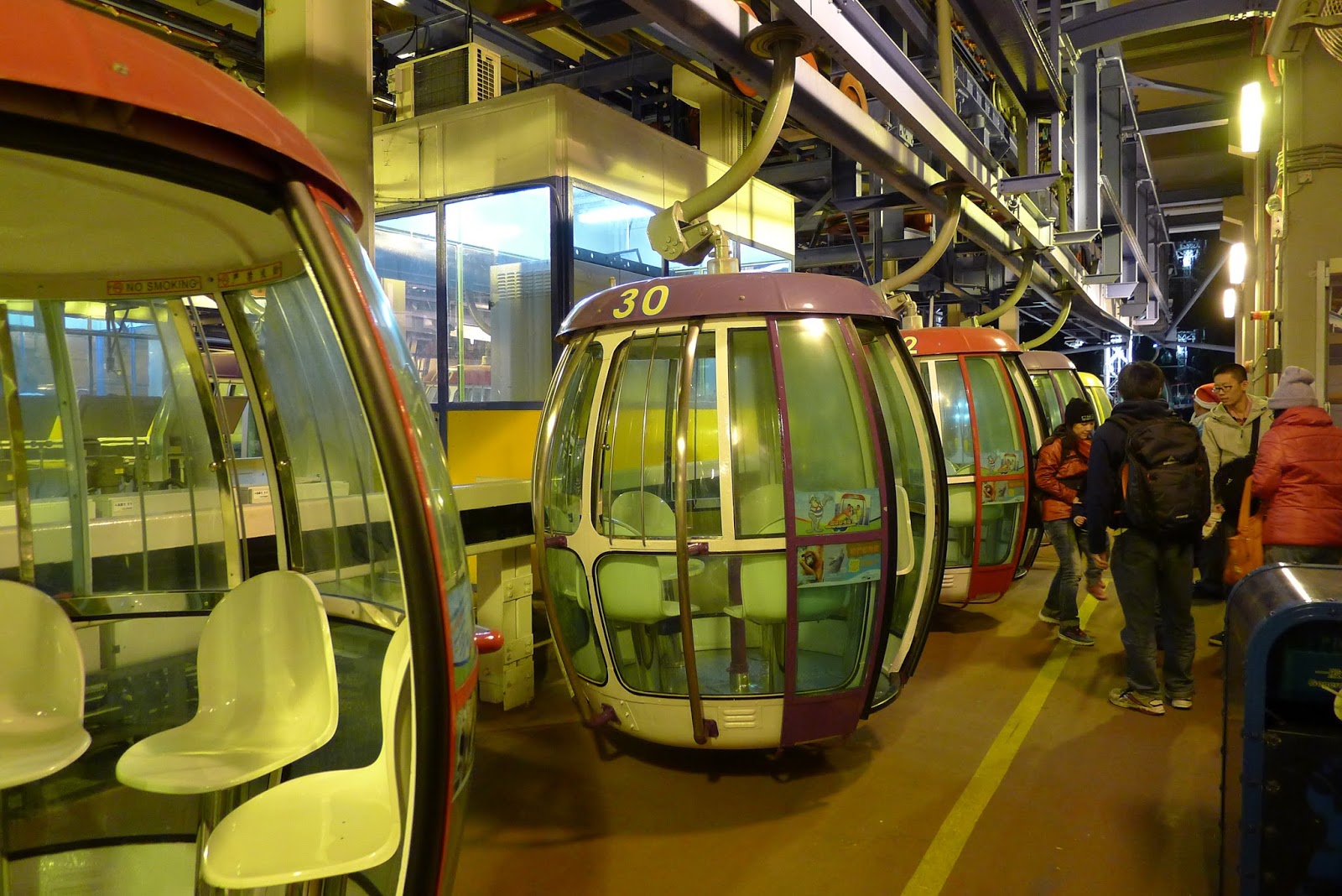 Untuk cable car, terdapat 2 tipe kabin, normal cabin dan crystal cabin (yang bawahnya kaca transparan). Harga crystal cabin HKD 255 (sekitar 459 ribu rupiah) per orang, jauh lebih mahal dibanding normal cabin yang hanya HKD 165 (sekitar 297 ribu rupiah) per orang. Lamanya perjalanan menggunakan cable car sekitar 30 menit, waktu yang cukup lama buat orang yang takut ketinggian.
